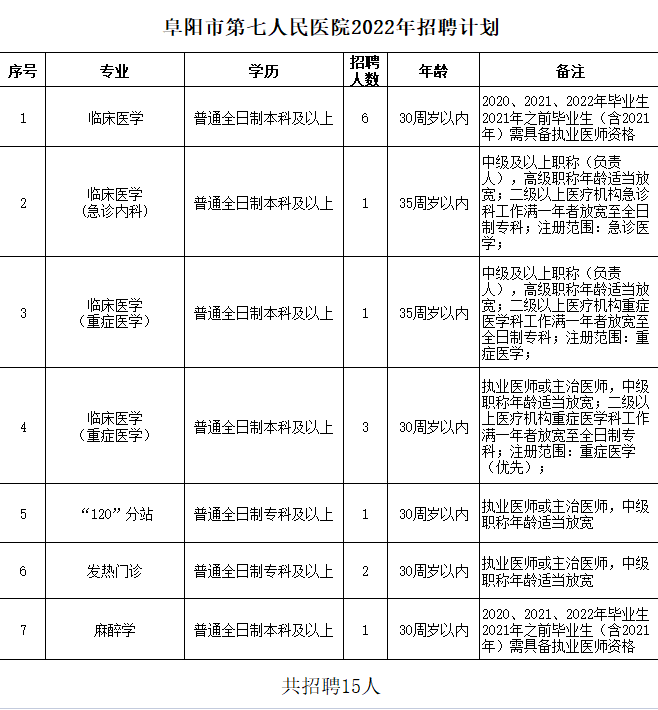 2022年阜陽市第七人民醫(yī)院招聘公告