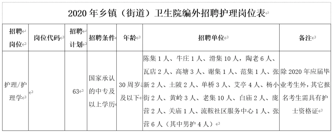 本次計劃招聘中專及以上學歷護理崗位人員63名(詳見下表)