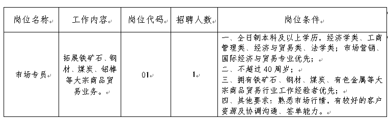 銅陵市建投商貿(mào)有限責(zé)任公司于2018年4月26日注冊成立,為銅陵市國有企業(yè)?,F(xiàn)因業(yè)務(wù)發(fā)展需要,面向社會招聘勞務(wù)派遣工作人員1名。具體事項公告如下: