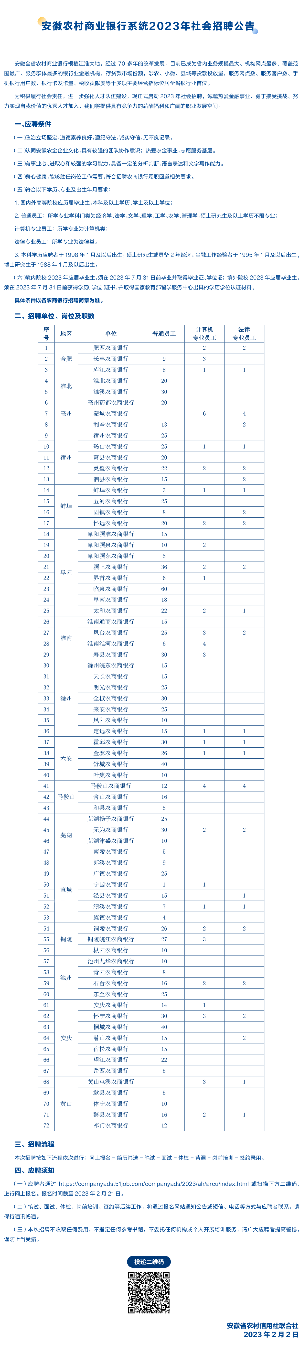 2023年安徽農(nóng)村商業(yè)銀行系統(tǒng)社會(huì)招聘公告