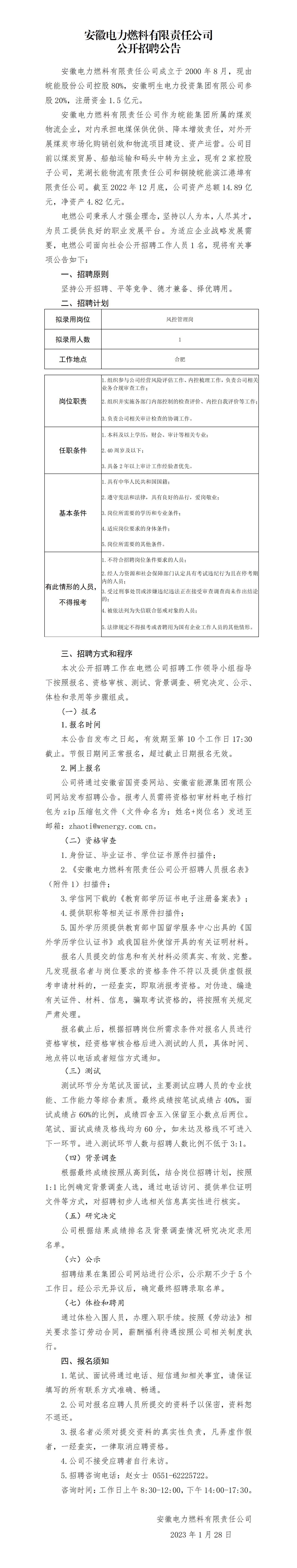 2023年安徽電力燃料有限責任公司公開招聘公告