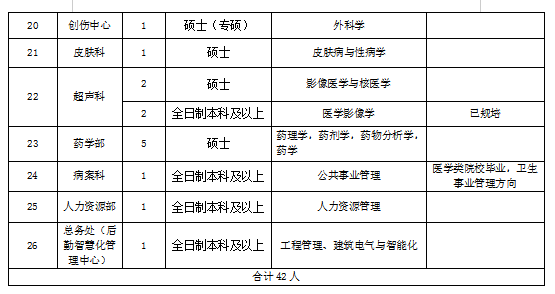 4.博士35周歲以下(即1988年1月1日及以后出生);碩士生30周歲以下(即1993年1月1日及以后出生);本科生25周歲以下(即1998年1月1日及以后出生)(有規(guī)培證人員年齡可放寬到30周歲),部分崗位特殊要求的見計劃表;