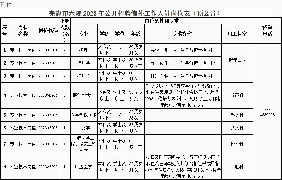 2023年蕪湖市第六人民醫(yī)院公開招聘編外工作人員預公告