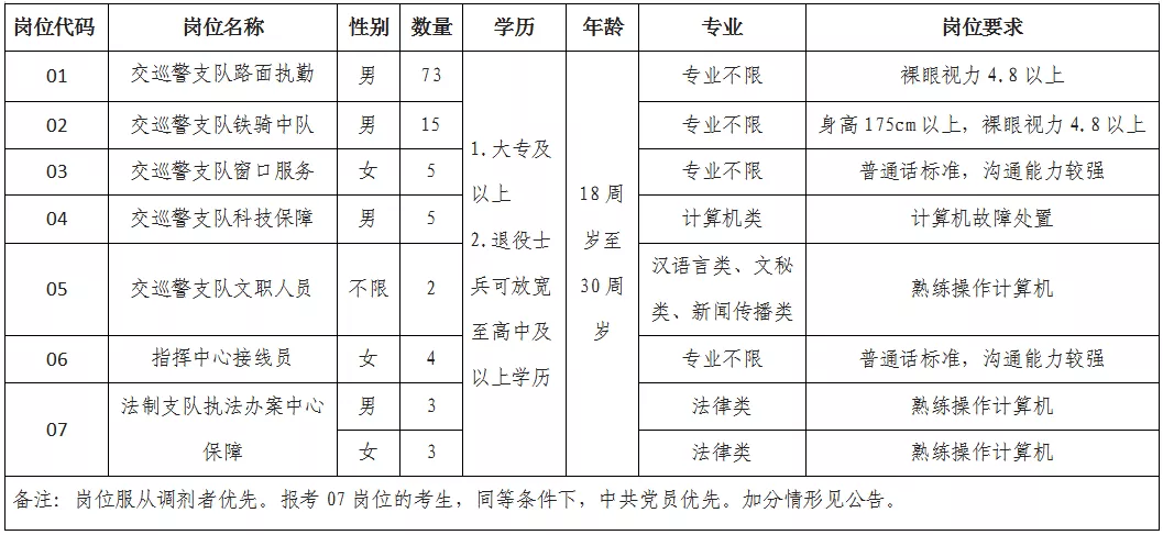 1.本次招聘警務輔助人員,主要崗位分別為交巡警支隊從事路面執(zhí)勤、窗口服務、科技保障崗位和指揮中心接線員、法制支隊執(zhí)法辦案中心辦案場所保障崗位。