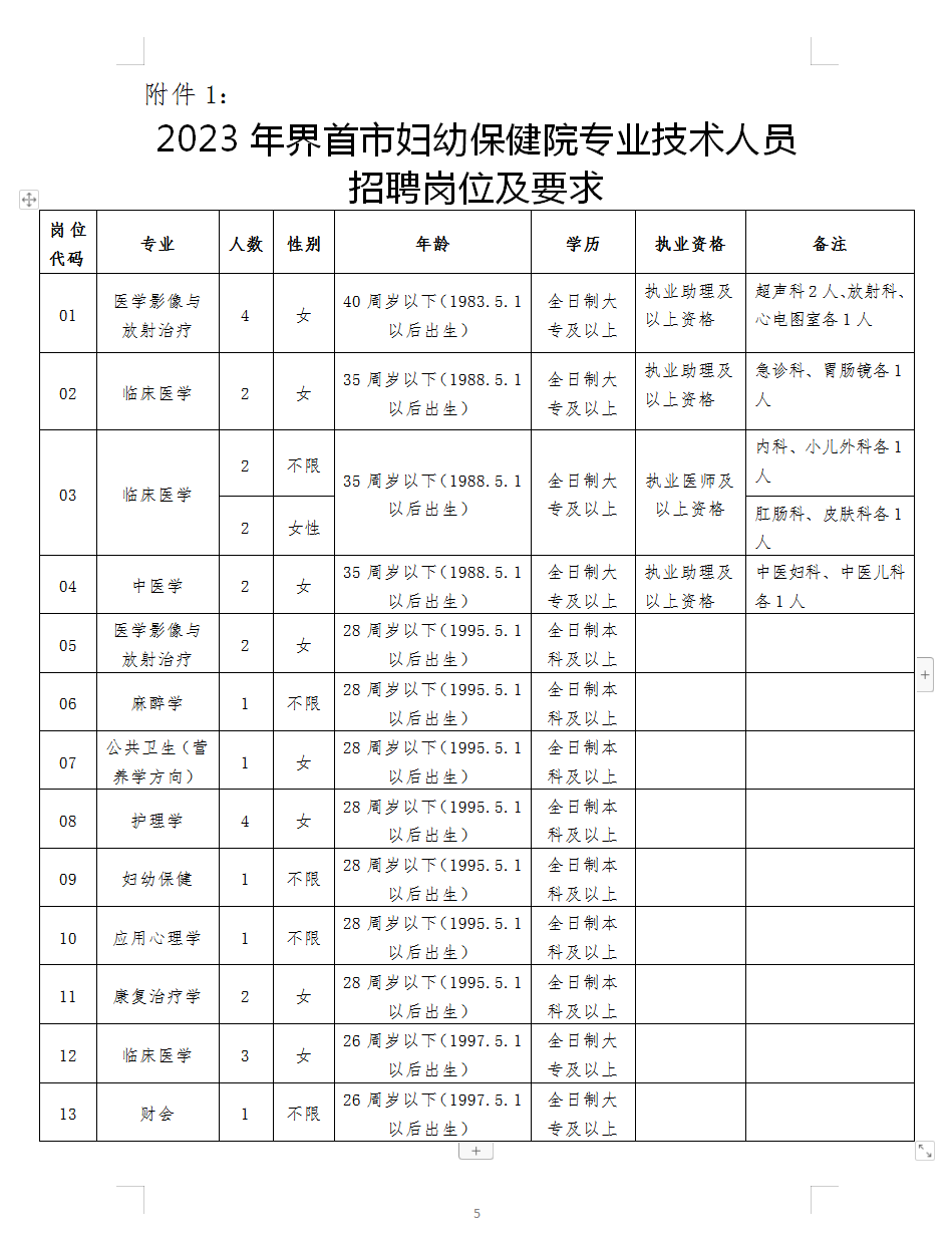 2023年阜陽界首市婦幼保健院專業(yè)技術人員招聘公告