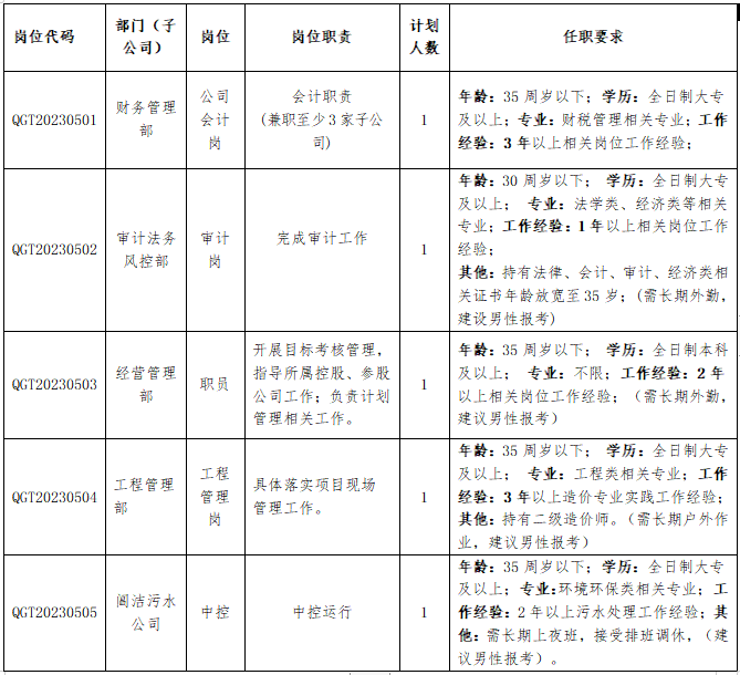 公開招聘人員崗位表中涉及“年齡條件”的如“35周歲(含)以下”為“1988年5月31日(含)以后出生”(其他涉及年齡計(jì)算的依此類推);工作經(jīng)歷要求,截止時(shí)間為2023年5月31日。