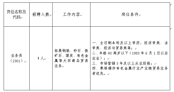 銅陵市建投商貿(mào)有限責(zé)任公司于2018年4月26日注冊成立,為銅陵市國有企業(yè)。現(xiàn)因業(yè)務(wù)發(fā)展需要,面向社會招聘勞務(wù)派遣工作人員1名。具體事項公告如下: