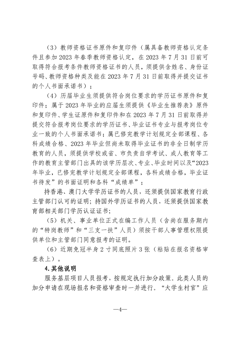 (四)具有符合招聘崗位要求的教師資格證書(含已具備教師資格認(rèn)定條件且參加2023年春季教師資格認(rèn)定,在2023年7月31日前可取得教師資格證書的人員);