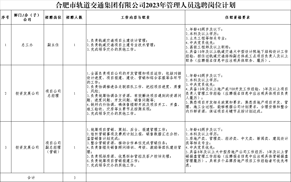 2023年合肥市軌道交通集團(tuán)有限公司公開(kāi)選聘管理人員公告