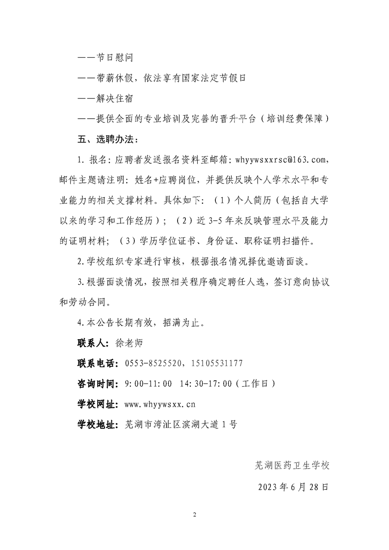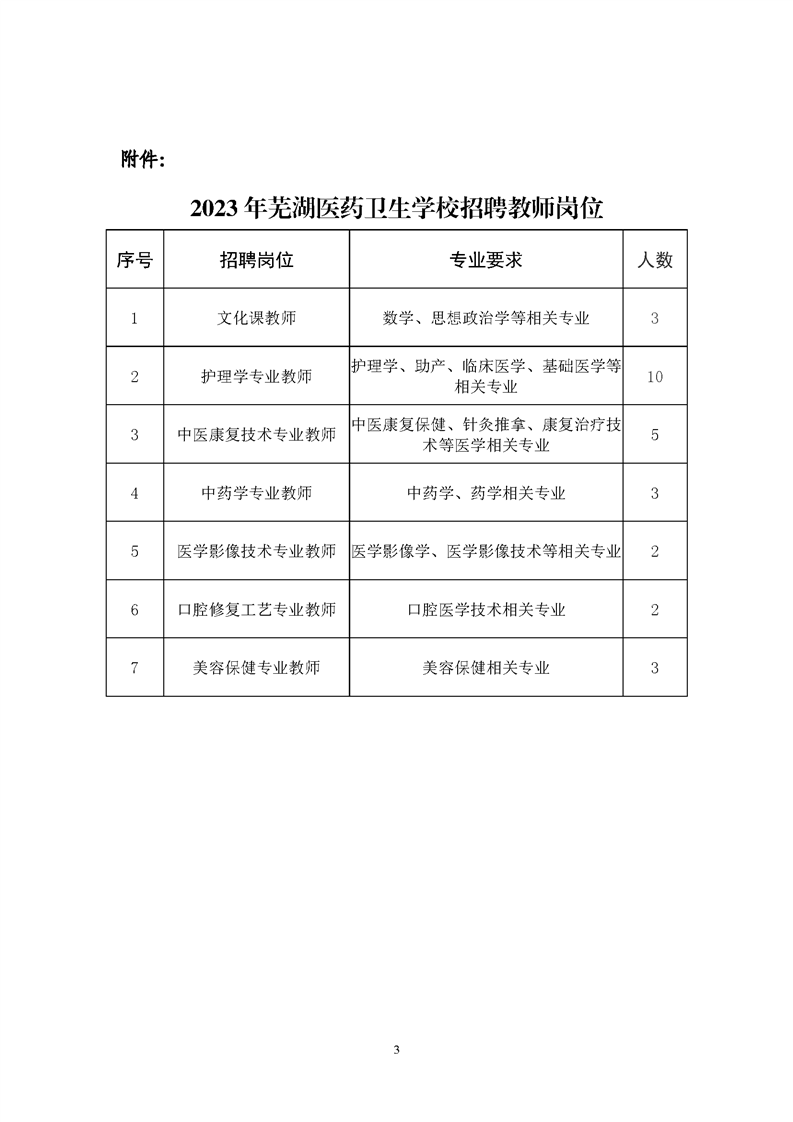 2023年蕪湖醫(yī)藥衛(wèi)生學校教師招聘公告