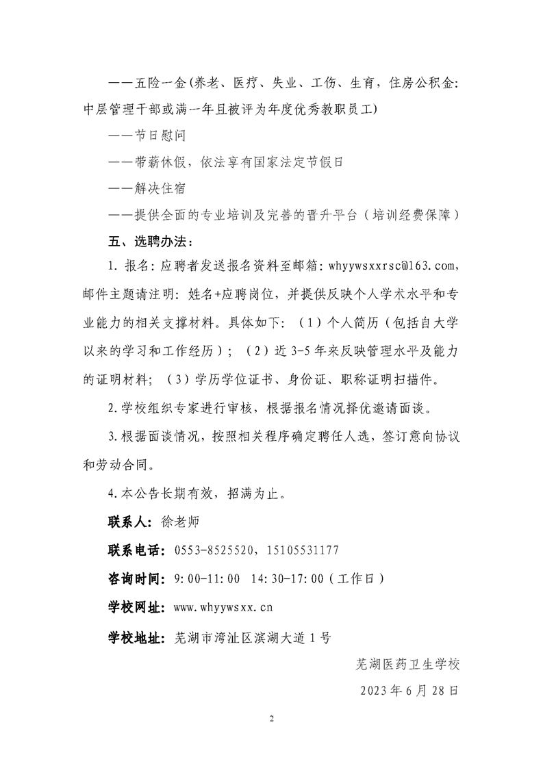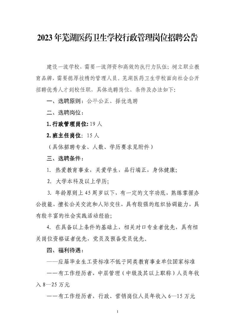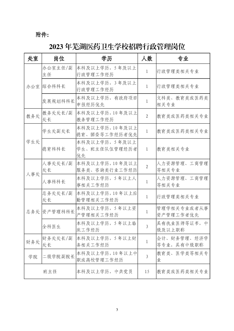 2023年蕪湖醫(yī)藥衛(wèi)生學校行政管理崗位招聘公告