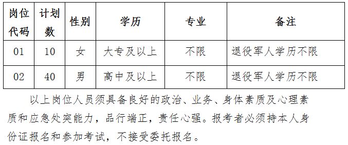 根據(jù)公安工作需要,面向社會(huì)公開招聘50名警務(wù)輔助人員。具體崗位及要求如表所示: