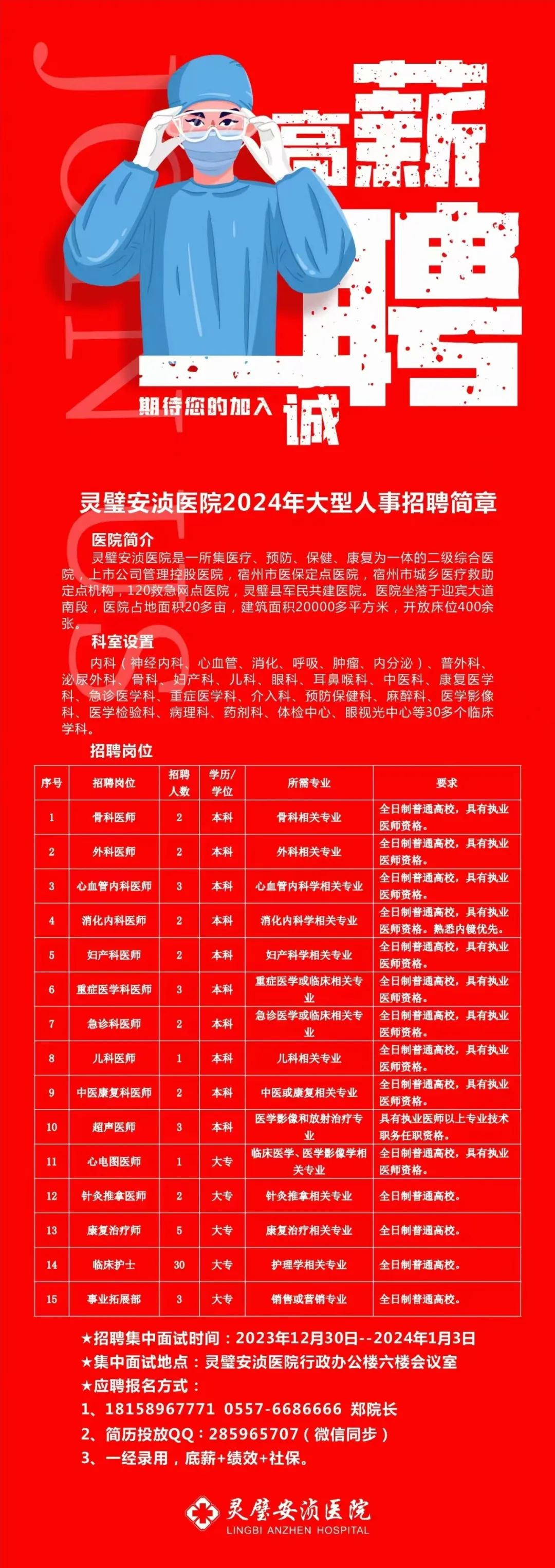 靈璧安湞醫(yī)院是一所集醫(yī)療、預(yù)防、保健、康復(fù)為一體的二級(jí)綜合醫(yī)院,上市公司管理控股醫(yī)院,宿州市醫(yī)保定點(diǎn)醫(yī)院,宿州市城鄉(xiāng)醫(yī)療救助定點(diǎn)機(jī)構(gòu),120救急網(wǎng)點(diǎn)醫(yī)院,靈肇縣軍民共建醫(yī)院。醫(yī)院坐落于迎賓大道南段,醫(yī)院占地面積20多畝,建筑面積20000多平方米,開放床位400余