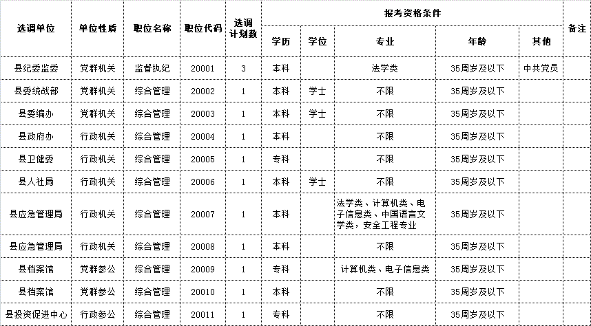 2020年馬鞍山含山縣縣直機關(guān)公開選調(diào)公務(wù)員職位表