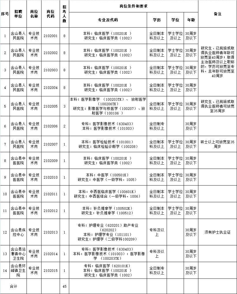 2021年下半年馬鞍山含山縣醫(yī)療衛(wèi)生事業(yè)單位公開招聘工作人員崗位計劃表