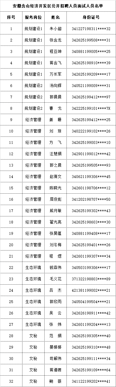 2020-06-02 17:47:59閱讀()含山縣人民政府根據(jù)《安徽含山經(jīng)濟(jì)開發(fā)區(qū)公開招聘人員公告》,經(jīng)報名、資格審查,現(xiàn)將進(jìn)入面試人選名單及有關(guān)事項公告如下: