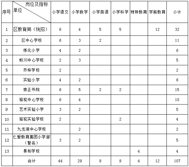 本次招聘分學(xué)段進(jìn)行,小學(xué)、幼教、特教場(chǎng)次招聘計(jì)劃崗位數(shù)107名,初中場(chǎng)次招聘計(jì)劃崗位數(shù)83名,具體如下: